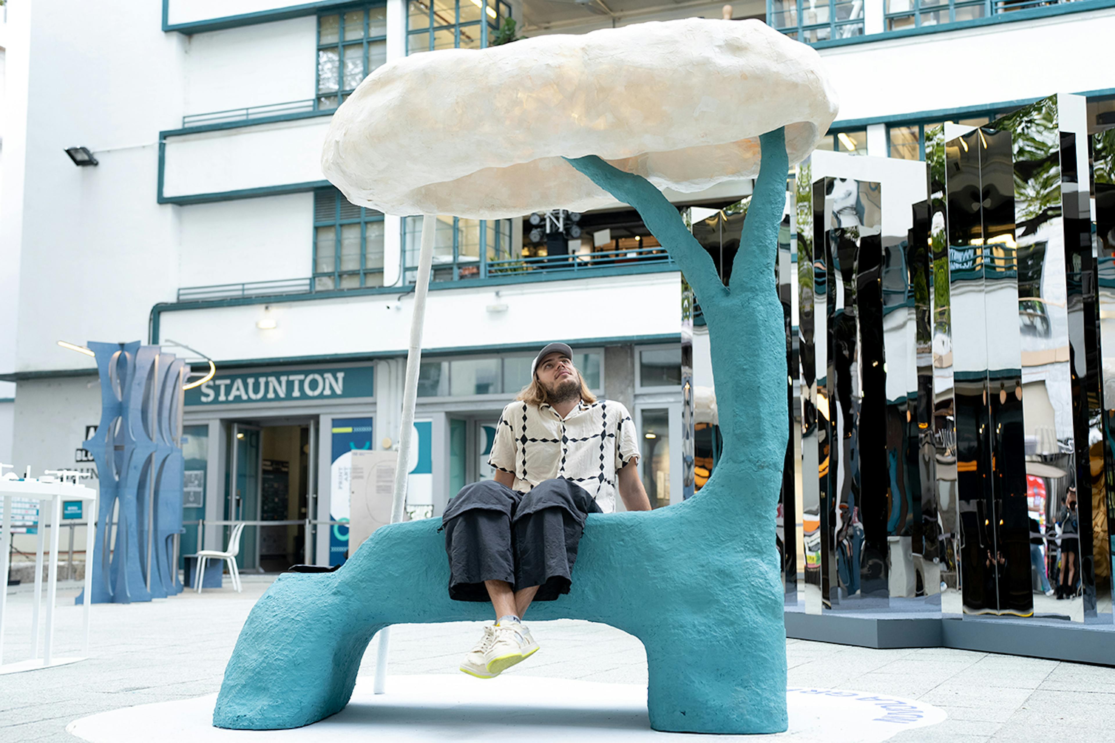 這個裝置作品提供了讓人可以靜坐、仰觀,享受光影流淌的靜謐一隅。在這裡,時光彷彿靜止。整個作品採用可回收物料,基座由再生紙皮製成,堅實穩固,頂蓋以棄置紙巾製成,無比輕柔。每一處都訴說着「重生」的故事,寓意廢棄之物也可重塑美好。