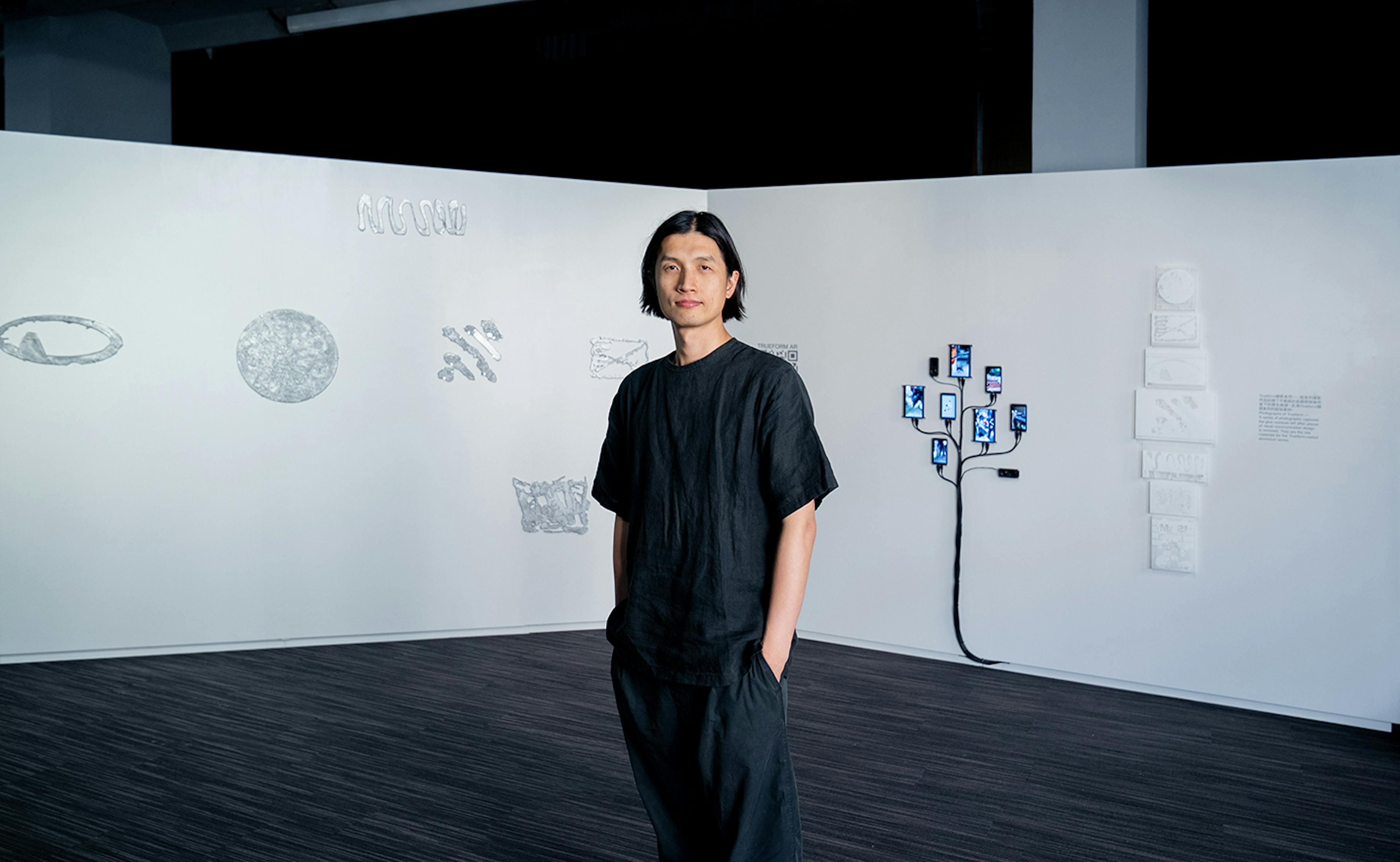 這一系列浮雕同時也是「Trueform AR」的觸發點——透過擴增實境技術,觀者在實體空間中看到一系列以「Stable Diffusion」生成的數位雕塑,在實境之中虛擬地回轉。「Trueform AR」將金屬鑄造與人工智能生成的成果並置——兩者皆帶有神秘色彩,又同時是科技發展的成果。